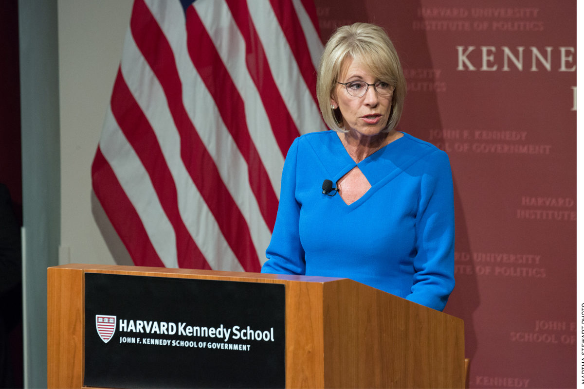 Now, of course, none of this means that anyone should feel obliged to like, respect, or agree with DeVos. One can loathe her. One can venomously denounce her agenda. But it is extraordinarily difficult to understand how anyone—particularly someone in an audience at an august, Ivy League university—can think it’s fair to label her a “white supremacist” . . . or stand by while others do so. And yet DeVos walked off the stage at Harvard to slanderous chants of “What does white supremacy look like? That’s what white supremacy looks like!” I keep waiting for some on the responsible Left to make this point. Instead, the silence is deafening. Perhaps no one feels a need to say anything because the phrase is becoming omnipresent wallpaper in the education debates, just one more familiar partisan epithet.