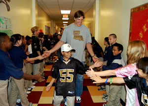 Scott Fujita greets more than 200 students of Belle Chasse Academy (2007). U.S. Navy photo by Mass Communication Specialist 1st Class Shawn D. Graham