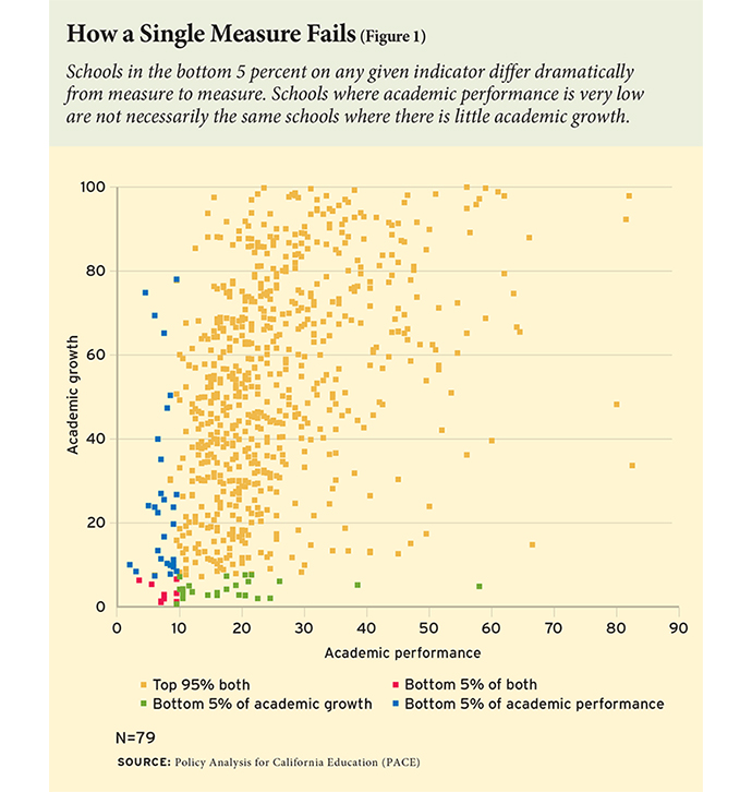 The PACE report demonstrates that used independently, different academic measures would identify different schools as the lowest performers. For all but the lowest-performing 1 percent of schools (which struggle across the board), a single number will inevitably produce arbitrary judgments about which schools are “better” and “worse,” concealing the specific strengths and weaknesses of specific schools and depriving educators of the information that they need to improve.