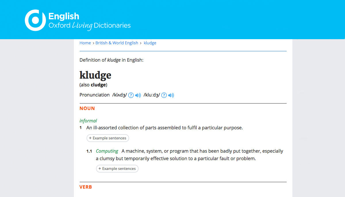 A “kludge” is defined by the Oxford English Dictionary as “an ill-assorted collection of parts assembled to fulfill a particular purpose . . . a clumsy but temporarily effective solution to a particular fault or problem.” The term comes out of the world of computer programming, where a kludge is an inelegant patch put in place to solve an unexpected problem and designed to be backward-compatible with the rest of an existing system. When you add up enough kludges, you get a very complicated program that has no clear organizing principle, is exceedingly difficult to understand, and is subject to crashes. Any user of Microsoft Windows will immediately grasp the concept.