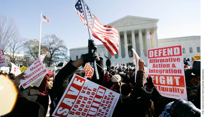 One sees a similar approach in Parents Involved, which presented the question of whether K–12 schools could take voluntary steps toward integration, that is, whether and when schools could consider race in student assignments. In Parents Involved, Scalia joined the plurality opinion of Roberts, who took the categorical view that race can never be taken into account, even when districts are trying to integrate schools rather than segregate them. (“The way to stop discriminating on the basis of race,” Chief Justice Roberts wrote, “is to stop discriminating on the basis of race.”) Roberts argued that this position was commanded by the Constitution and was consistent with Brown v. Board of Education (1954), which in Roberts’s view was not about school integration but about prohibiting any use of race in school assignments, regardless of the purpose.