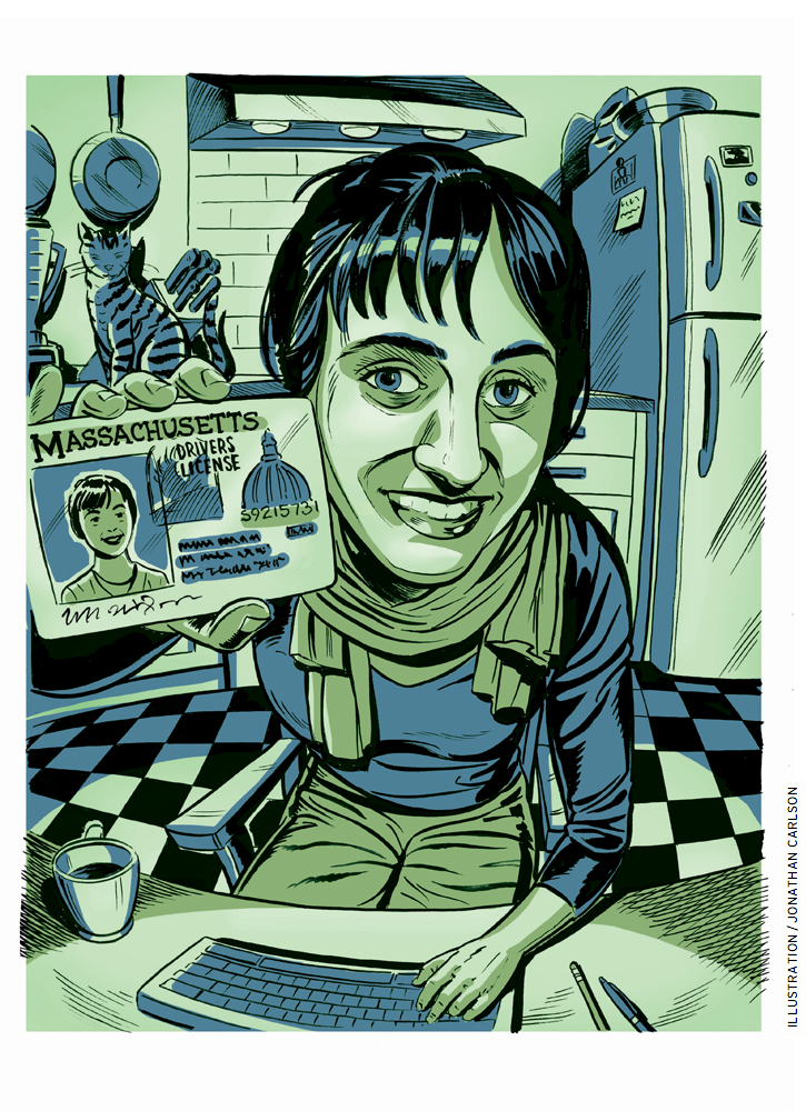 Fann holds up her driver’s license and looks into a fisheye webcam so the proctor can confirm her identity and see that there are no unauthorized parties in the room other than one of the cats. After a few more clicks, the test pops up on Fann’s laptop screen, along with a countdown clock in the upper-right-hand corner.