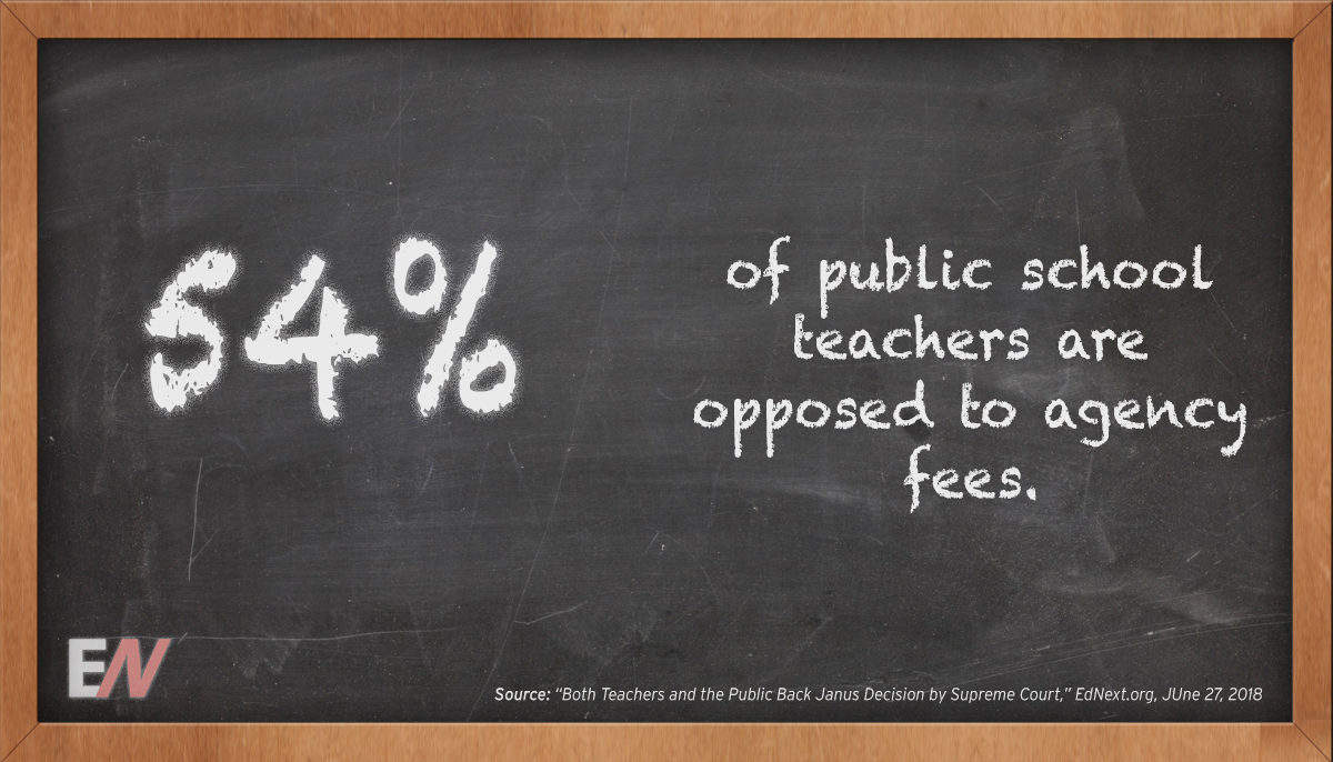 A month ago we and our colleagues at the Program on Education Policy and Governance in the Harvard Kennedy School asked a nationally representative cross-section of 2,230 Americans the following question: “In some states, all teachers must pay fees for union representation even if they choose not to join the union. Do you support or oppose requiring all teachers to pay these fees even if they do not join the union?” The question was posed as part of a broader survey of public opinion on education topics which is scheduled for release by Education Next later this summer.