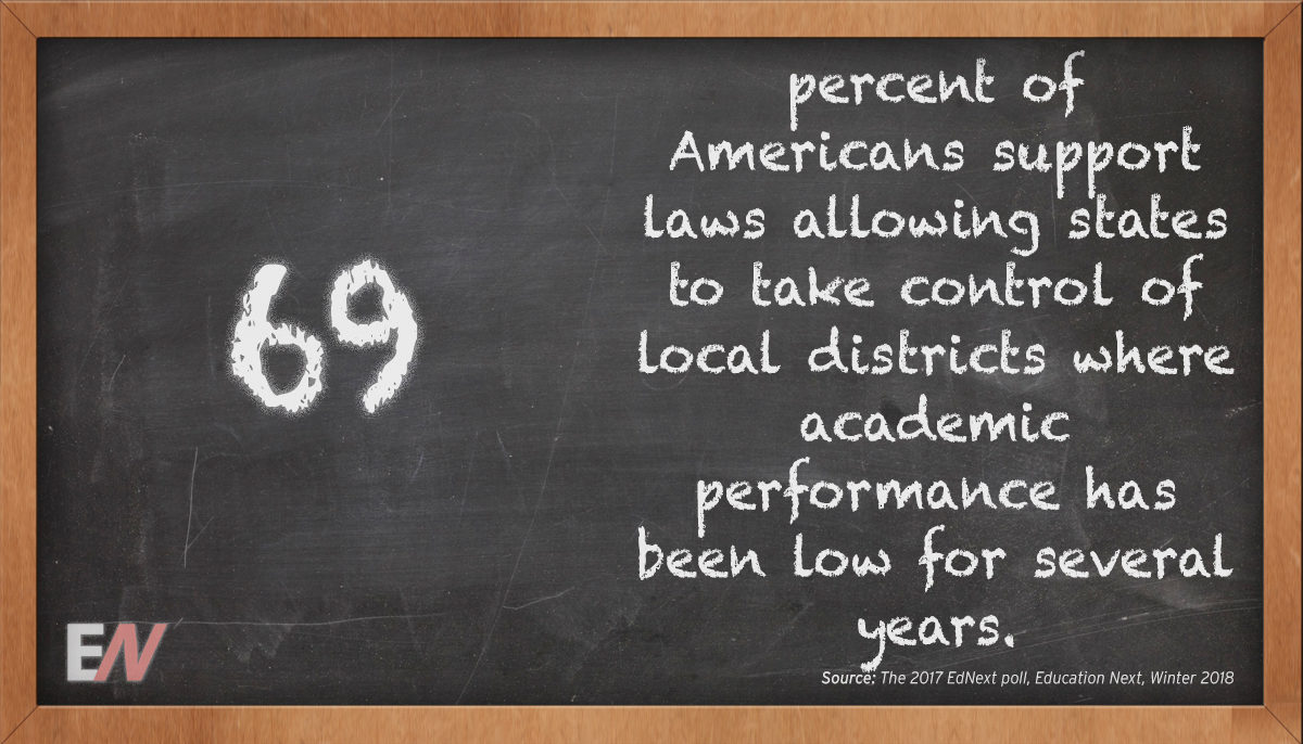 EdStat: 69 Percent of Americans Support Laws Allowing States to Take Control of Local Districts Where Academic Performance Has Been Low for Several Years – by Education Next