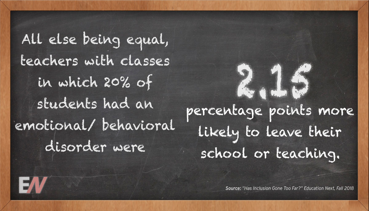 EdStat: All Else Being Equal, Teachers with Classes in which 20 Percent of Students had an Emotional/ Behavioral Disorder were 2.15 Percentage Points More Likely to Leave Their School or Teaching – by Education Next