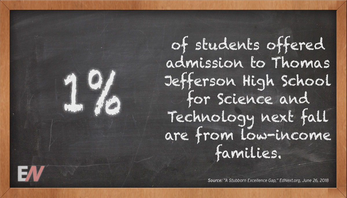 EdStat: One Percent of Students Offered Admission to Thomas Jefferson High School for Science and Technology Next Fall are from Low-Income Families – by Education Next