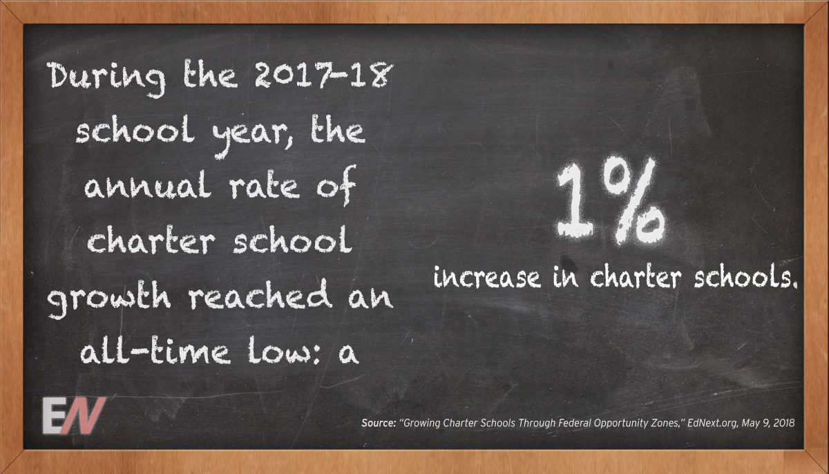 Despite educating more than 3.2 million students, the annual rate of charter school growth has reached an all-time low: a 1 percent increase in charter schools during the 2017-18 school year. This represents the fourth consecutive year that charter growth has slowed. In an article in our Summer 2018 issue of Education Next, Robin J. Lake, Trey Cobb, Roohi Sharma and Alice Opalka discuss barriers to charter-school growth in the San Francisco Bay Area and explore what charter leaders, policymakers, and communities can do to regain momentum and keep pace with demand. Derrell Bradford also addresses the slowing growth-rate of charter schools in our Summer 2018 issue, asking: what is the future role of single-site schools, given that charter management organizations (CMOs) and for-profit education management organizations (EMOs) are increasingly crowding the field? Finally, Adam Peshek proposes a way to tackle some of the obstacles to charter-school growth through the Opportunity Zone program (part of the 2017 tax reform package)—and hopefully create more high-quality public school options for children along the way.