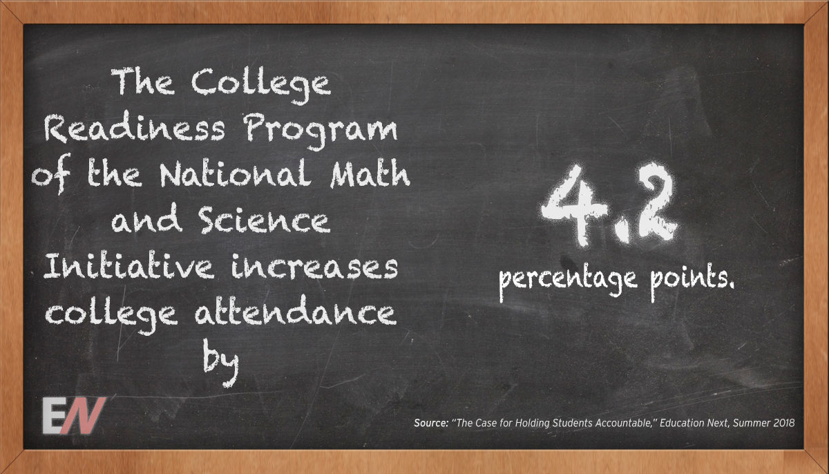 EdStat: The College Readiness Program of the National Math and Science Initiative Increases College Attendance by 4.2 Percentage Points – by Education Next