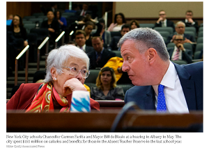 About 800 teachers were in the ATR pool at the end of last school year. They have been spending their days in what used to be called the “rubber room,” not teaching but still being paid. These teachers do not have permanent jobs, “sidelined in most cases because of disciplinary problems or bad teaching records or because they had worked in poorly performing schools that were closed or where enrollment declined,” explains Kate Taylor in the New York Times. Because of a deal that was made with the teachers unions, these teachers cannot be fired.