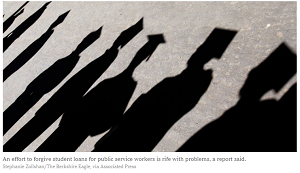 A report released today by the Consumer Financial Protection Bureau warns of problems with a federal program that forgives some student loans for people who take public service jobs.