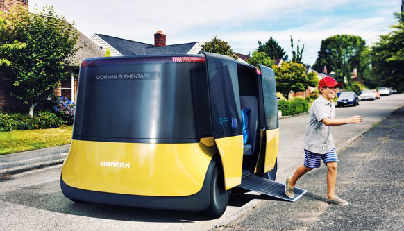 In Wired, Aarian Marshall writes about Hannah, a self-driving pod designed to hold up to 6 kids at a time. The autonomous vehicle would pick kids up and drop kids off right at their houses and use facial recognition software to make sure the right kids are getting on the right bus. An adult can observe and communicate with the students on the bus from a remote location. At this point, Hannah is just a concept created by a Seattle-based design firm called Teague.