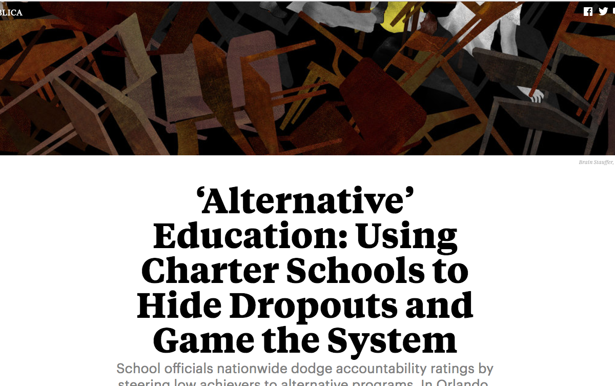 Unfortunately, the ProPublica reporter and editor involved in producing the piece are defending  the decision to take the angle they did, citing a spike in alternative school enrollments in Orlando and the disproportionate representation of charter providers in the alternative school space. The publication pointed out that other parts of the piece that focus on the broader problem of alternative programs.