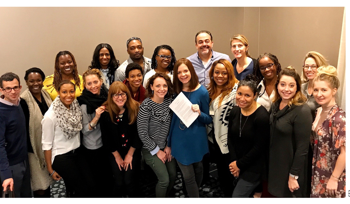 Kristyn Klei Borrero (center, holding a sheet of paper) and the CT3 team.