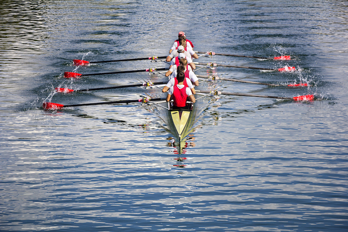 To be of championship caliber, a crew must have total confidence in each other, able to drive with abandon, confident that no man will get the full weight of the pull…. When you get the full rhythm in an eight, it’s pure pleasure to be in it. It’s not hard work when the rhythm comes—that “swing” as they call it. I’ve heard men shriek out in delight when the swing came into an eight; it’s a thing they’ll never forget as long as they live.