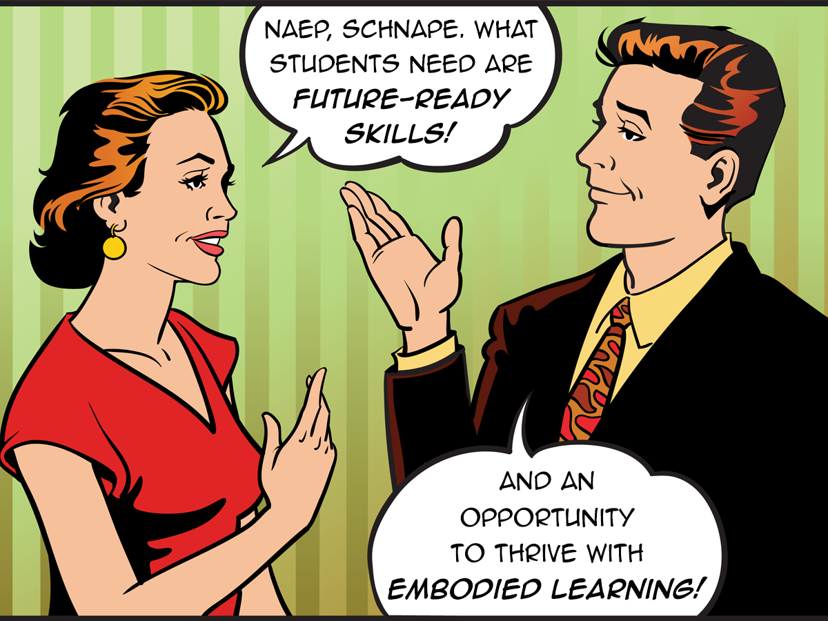 I got a back-to-school pitch explaining how “RealSense and Prowise MOVE are enabling gesture-based, embodied learning, which shifts the classroom from passive to active engagement . . . so that students learn by moving, seeing, and hearing, not just reading or writing.” This might be fine if students were already reading. But we know that most do not; and the NAEP results suggest that many cannot. What did the pitch propose in lieu of reading? “Embodied learning” as a “future-ready” way to “make classrooms more interactive and adaptable for diverse learners.”