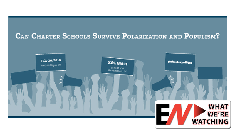 On Thursday, July 26, 2018 at 4 pm, the Fordham Institute will host a panel discussion on support for charter schools. As the event page notes, last year’s Education Next poll found a steep drop in charter support among Democrats. The panelists, Charles Barone, Carlos Marquez, and Nina Rees, and moderator Mike Petrilli will consider what America’s rising polarization and populism could mean for charter schools.